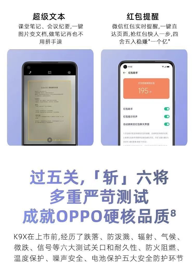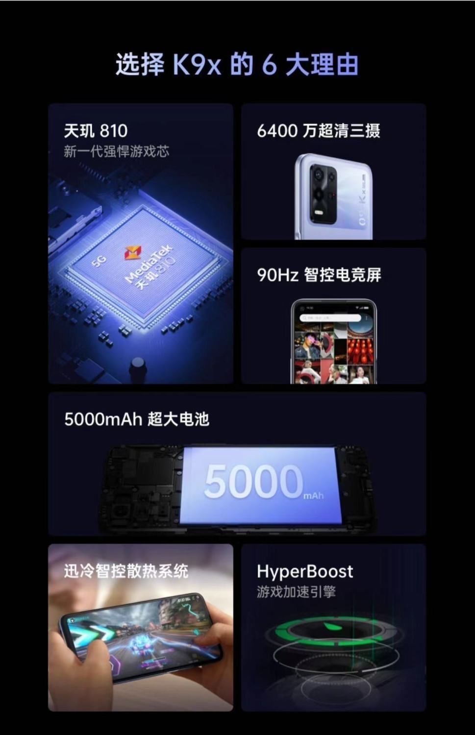 | 商品名称 | OPPO K9x 全网通5G 天玑810游戏芯片 超清三摄智能学生备用流手机 |
