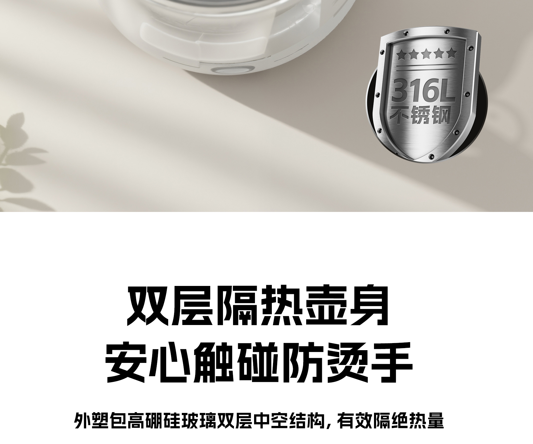 半球玻璃烧水壶家用恒温316不锈钢电热水壶保温一体全自动大容量